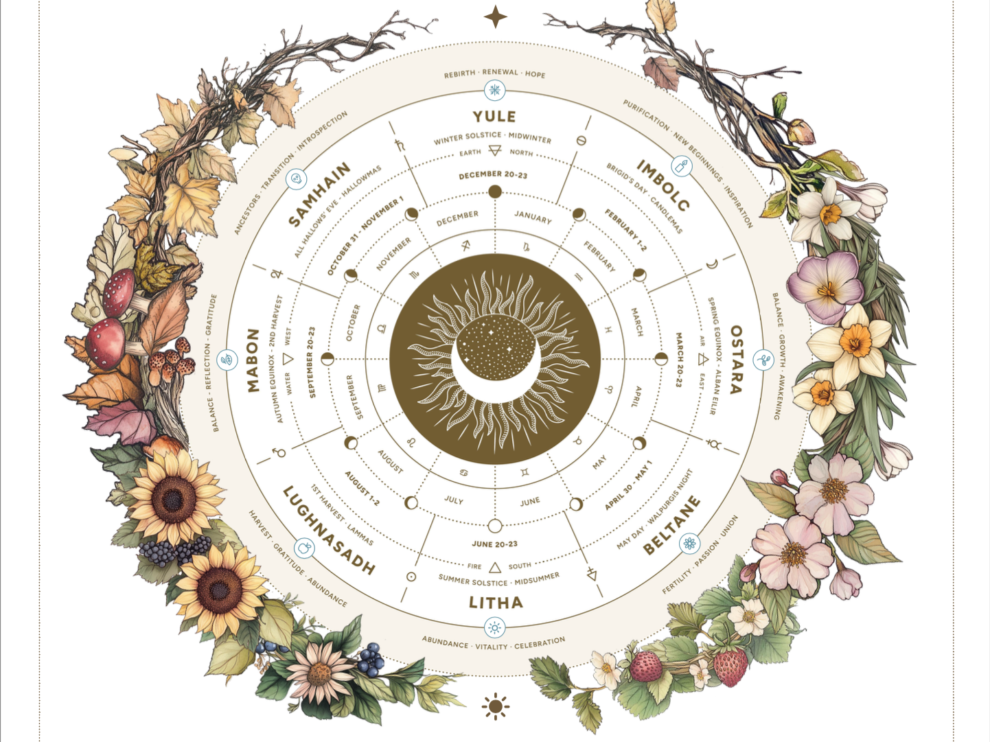 Each Medicine Dharma module unfolds over a weekend immersion, offering a rhythm of deep learning, ceremonial experience, and integration. The course includes over 72 hours of transformational content, spread across 8 immersive modules aligned with the Wheel of the Year—an ancient solar calendar that honors the Earth’s natural rhythms. Each module is rooted in one of the eight sacred seasonal festivals (Sabbats), providing a structured yet intuitive framework for ceremonial journeywork, shadow integration, and earth-based dharma practice. This cyclical design allows seekers to harmonize their inner work with the turning of the seasons, deepening both personal and planetary connection.